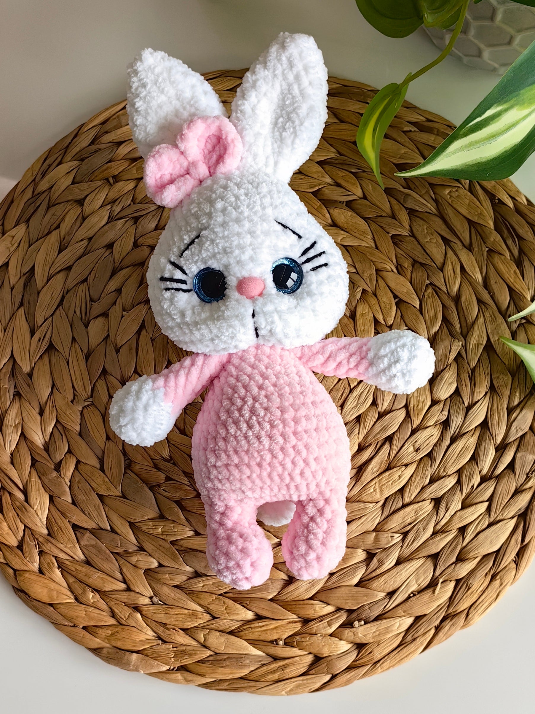 Зайче малко 22см бяло и розово