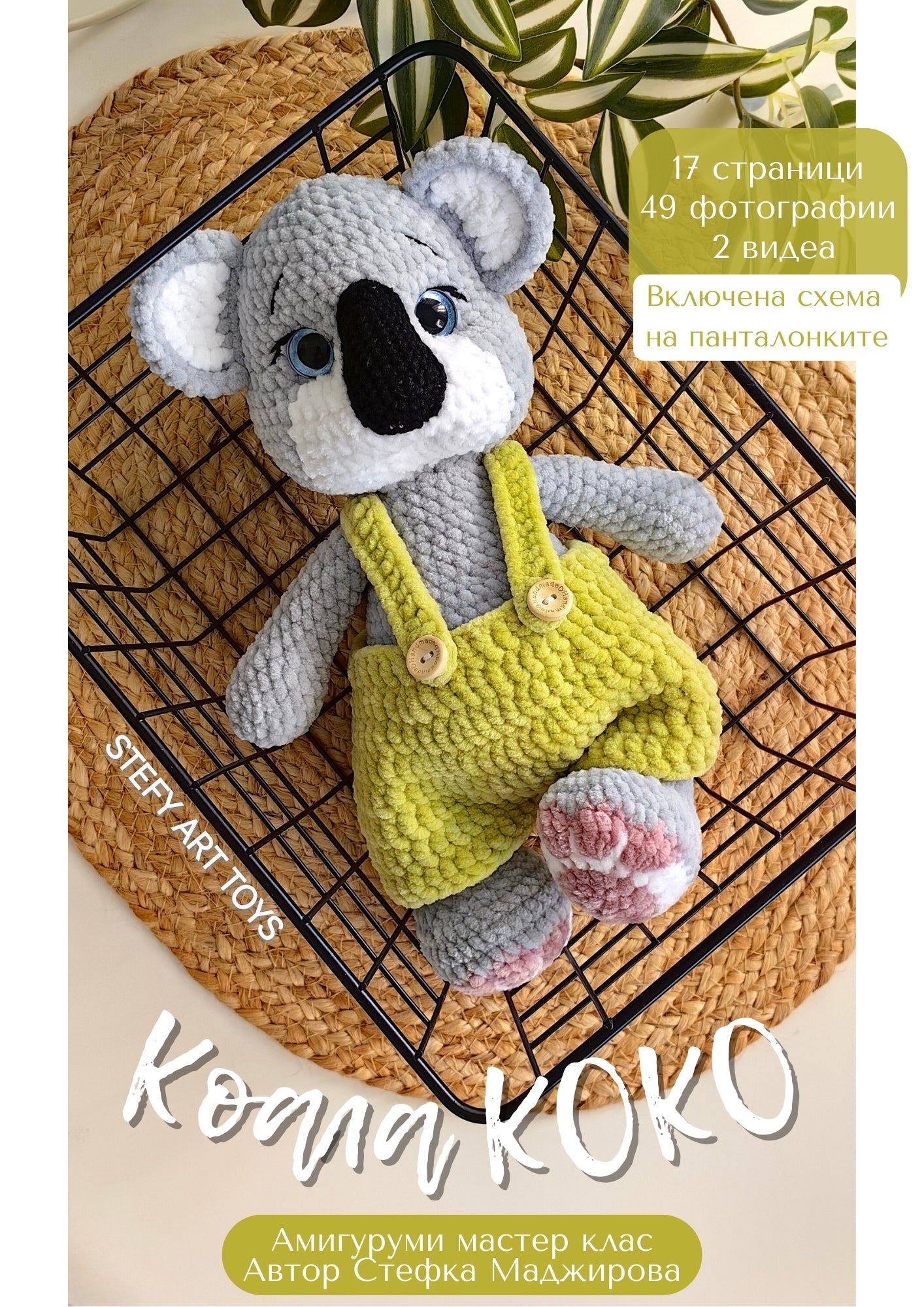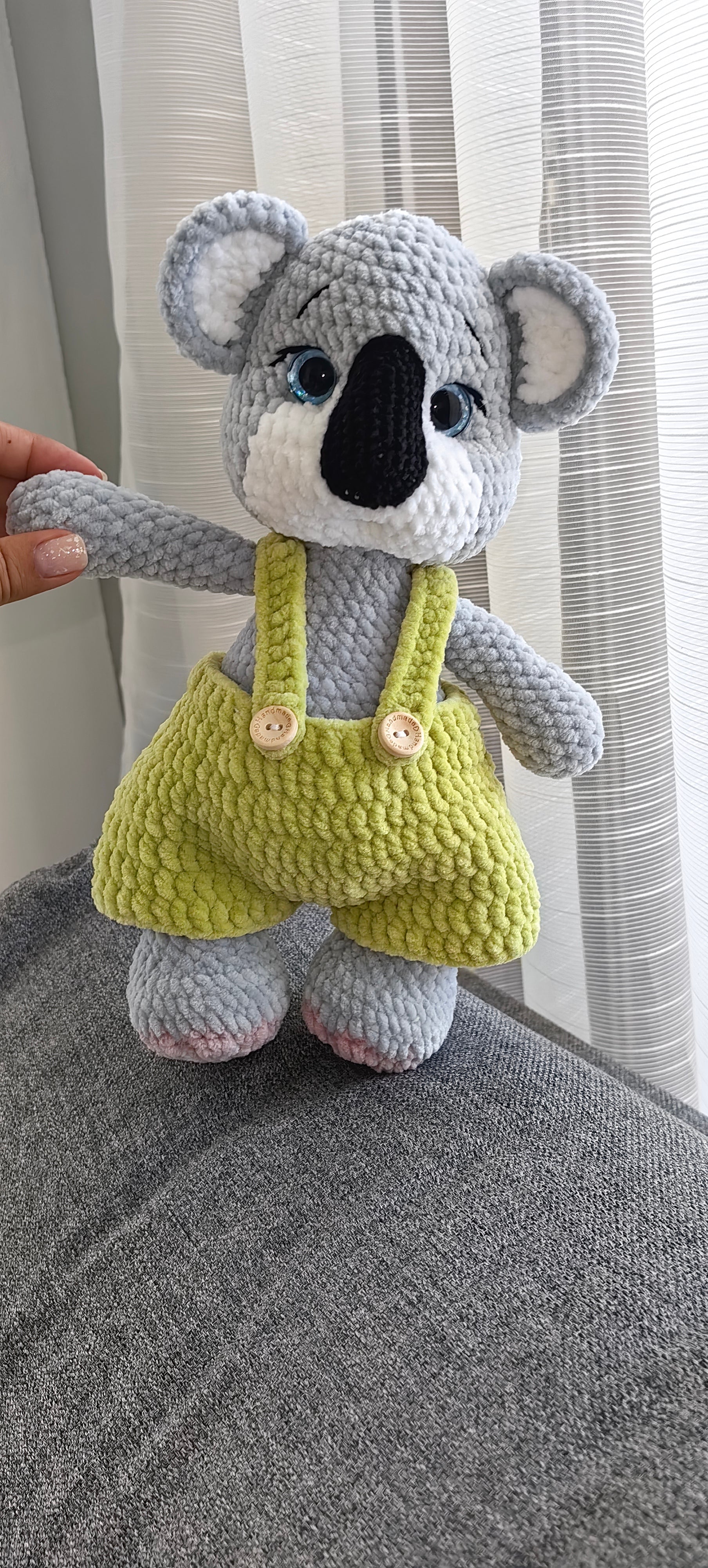 Готовата играчка се получава около 30см на височина. Изработено е от плюшена прежда. Крачетата и ръчичките се вплитат в тялото. Пришиват се главата, нослето и ушите. Във файла е включена и схемата на панталонките.